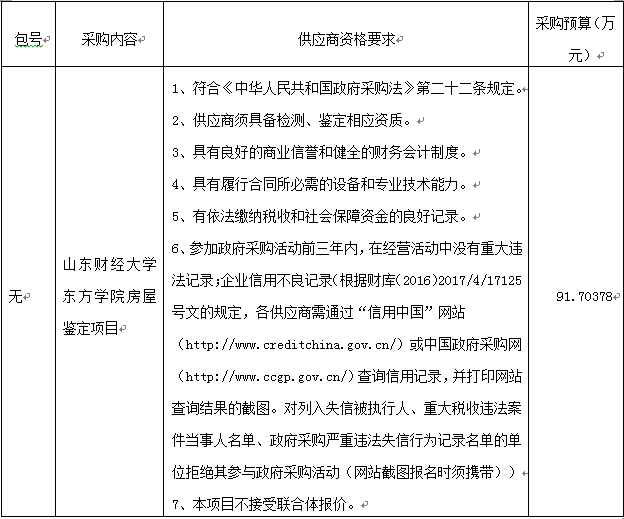 二、采购项目名称:山东财经大学东方学院房屋鉴定项目